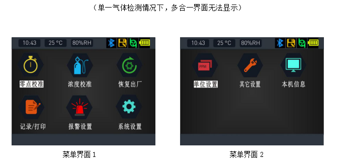 ¡ñ¸ßÇå2.5Ó¢´ç²ÊÆÁÏÔʾʵʱŨ¶È¡¢±¨¾¯¡¢Ê±¼ä¡¢Î¶ȡ¢Êª¶È¡¢´æ´¢¡¢Í¨Ñ¶¡¢´òÓ¡¡¢µçÁ¿¡¢³äµç״̬µÈÐÅÏ¢ £¬²Ëµ¥½çÃæ½ÓÄɸßÇå·ÂÕæÍ¼±êÏÔʾ¸÷¸ö²Ëµ¥µÄ¹¦Ð§Ãû³Æ