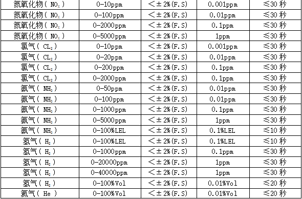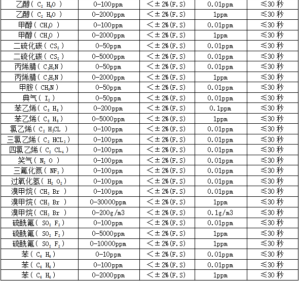 ²¿·Ö¿É¼ì²âÆøÌåÁÐ±í£º