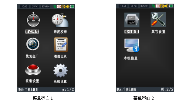 ¡ñ3.5Ó¢´ç¸ßÇå²ÊÆÁÏÔʾʵʱŨ¶È¡¢±¨¾¯¡¢Ê±¼ä¡¢Î¶ȡ¢Êª¶È¡¢´æ´¢¡¢Í¨Ñ¶¡¢´òÓ¡¡¢µçÁ¿¡¢³äµç״̬µÈÐÅÏ¢£¬²Ëµ¥½çÃæ½ÓÄɸßÇå·ÂÕæÍ¼±êÏÔʾ¸÷¸ö²Ëµ¥µÄ¹¦Ð§Ãû³Æ